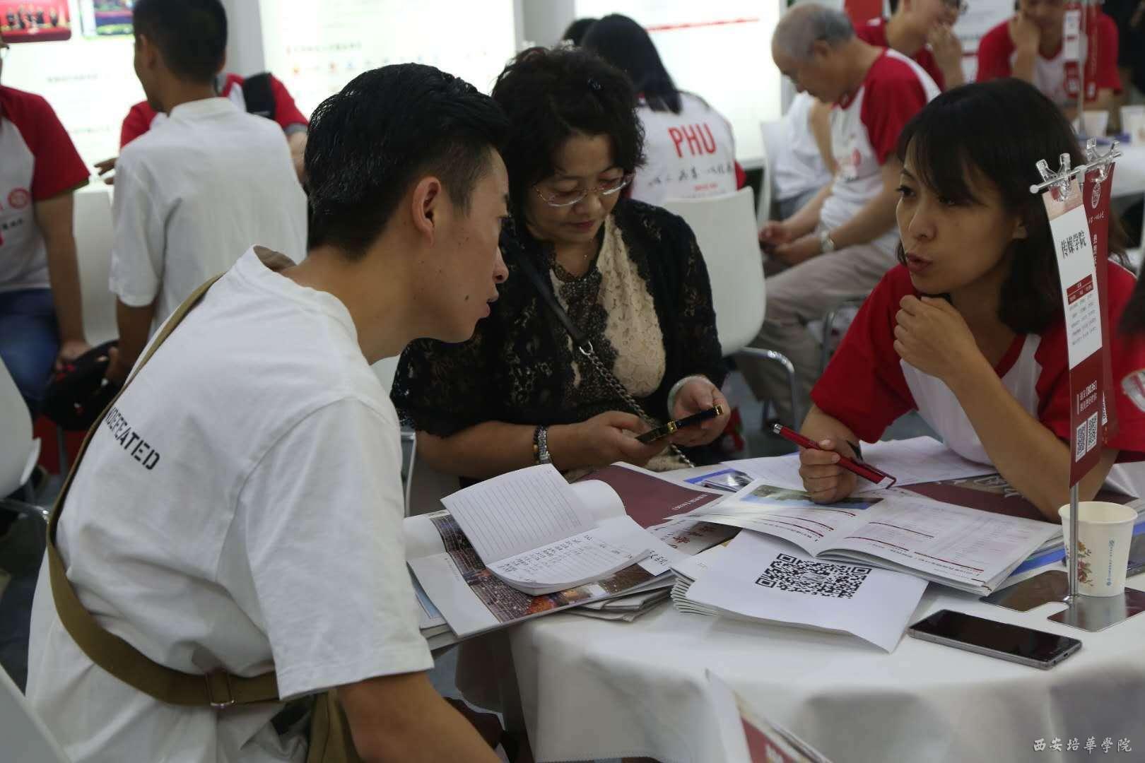 西安培华学院展位位于B2馆内,以辨识度强的红色标识映入眼帘,令人印象深刻。当日午时2019年高考成绩公布后,前来咨询的考生和家长络绎不绝,身着红白相间的培华师生工作人员耐心细致地为每一位咨询者提供最优的答案。