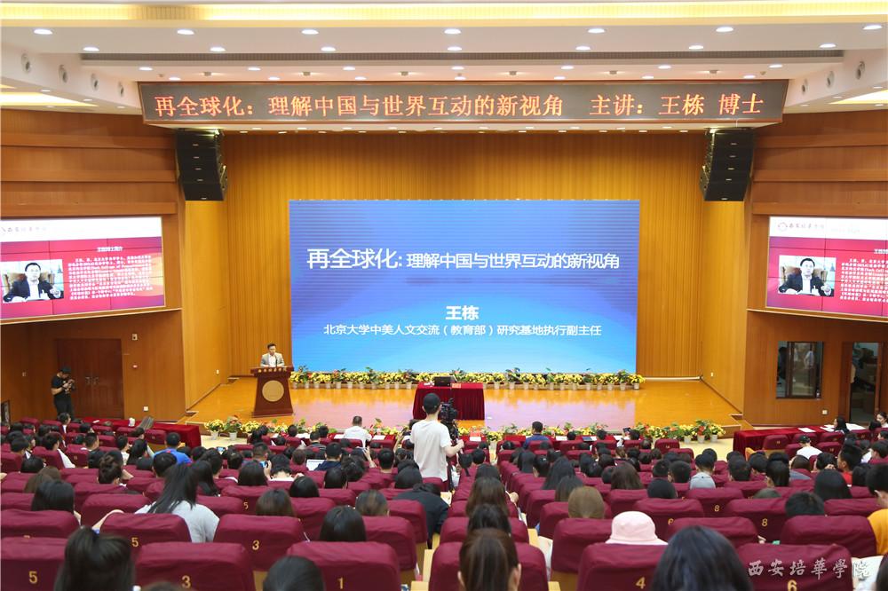 6月12日,应姜波理事长之邀,盘古智库学术委员会秘书长、北京大学国际关系学院副教授王栋博士来到培华,为学院师生进行了《再全球化:理解中国与世界互动的新视角》的专题报告。400余名师生在图书馆报告厅聆听了报告。
