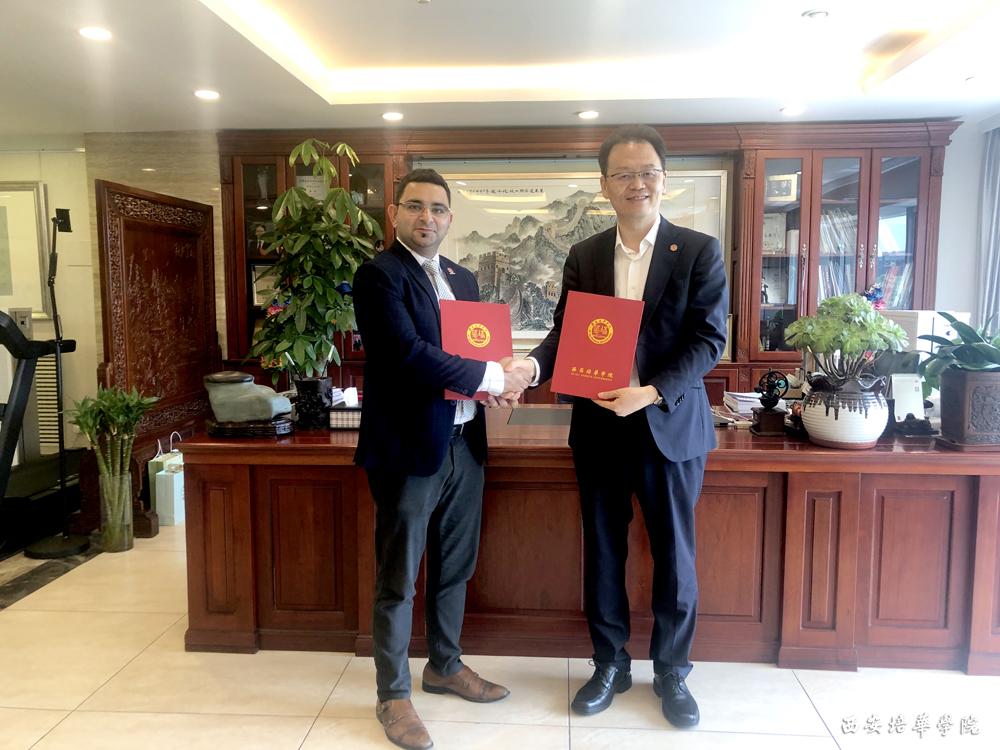 姜波理事长与加拿大范莎学院国际部主管Saurabh Malhotra签署MOU