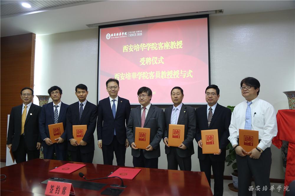 日本华侨华人博士协会会长葛宗涛、名誉会长张善俊、名誉会长赵凤济、执行会长张书明、执行会长赵新为、常务副会长杨博、北海道分会会长汪志平受聘为“西安培华学院客座教授”