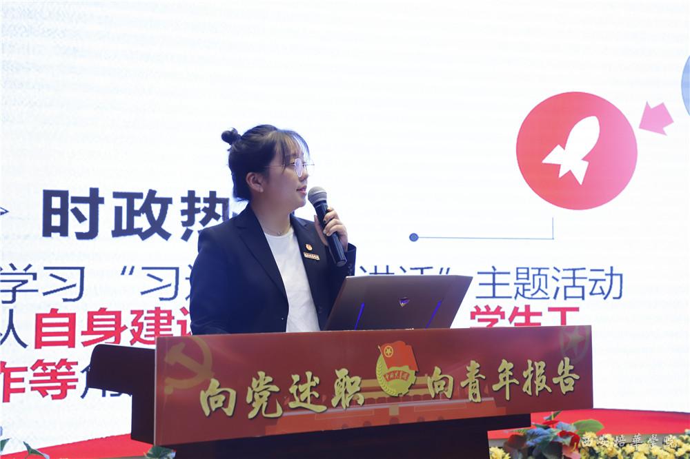 人文与国际教育学院团委书记王博潮讲述学院团委工作的整体规划,以“引领一个思想”“坚持两项基本工作原则”“树立三种意识”“落实四个工作重点”的工作格局,坚定方向、务实进取,助力该院团委工作抓铁有痕、踏石有印。