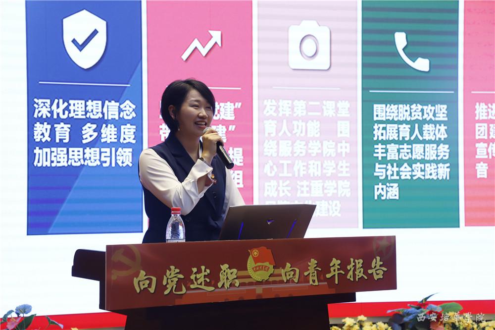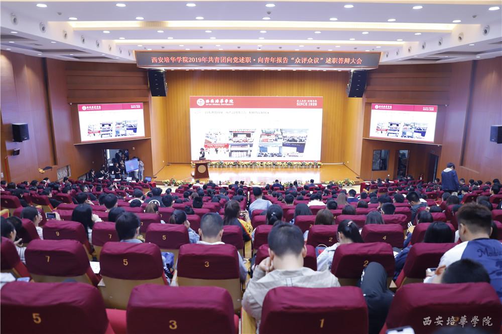 为落实团中央关于“全面大抓基层”重要导向,加强和规范基层团组织建设,构建全面立体科学评价机制,调动和发挥青年积极性,不断增强团组织的吸引力、凝聚力和战斗力。西安培华学院2019年共青团“向党述职·向青年报告”众评众议述职答辩大会于5月6日在维之图书馆报告厅隆重举行。校党委副书记、副校长姚文静,校党委委员、党委工作部部长陈玲,党委宣传部部长、新闻中心主任柳雨,思政课教学部简爱副教授,校团委书记、学生服务中心副主任蔡亮,学生服务中心副主任张静远及校团委、二级学院有关负责同志出席本次大会,同时出席大会的还有大众评审、团学青组织代表,共计400余人。