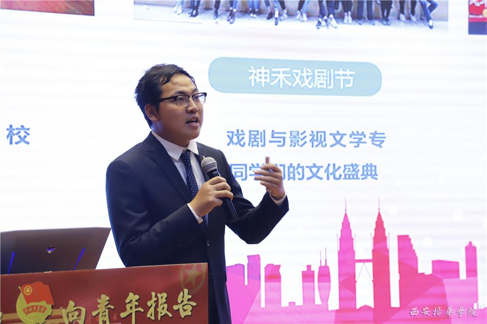 校党委委员、团委书记蔡亮宣读了西安培华学院2019年五四共青团工作考核的最终结果和五四红旗团委的获得者。