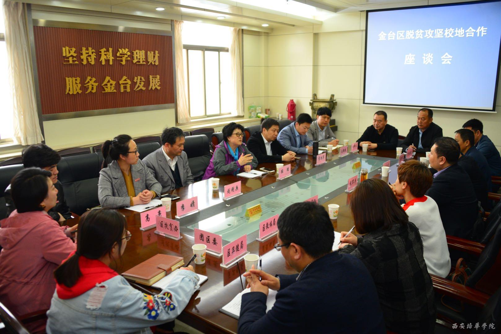 上午,校地双方举行了座谈会,金台区副区长袁军平,区政府办、扶贫办、文明办、教体局、农业局、卫健局和团区委等部门负责同志参加座谈。会上,双方讨论了2019年“双百工程”帮扶合作有关事项。学校医学院、传媒学院、产学研协同创新中心等从专业角度介绍了学院特点、可提供的扶贫项目等情况;区有关单位先后就产学研合作基地建设、健康扶贫、教育培训、特色农产品消费扶贫、激发贫困地区内生动力、脱贫攻坚传媒制作等方面与学校调研人员交流讨论。