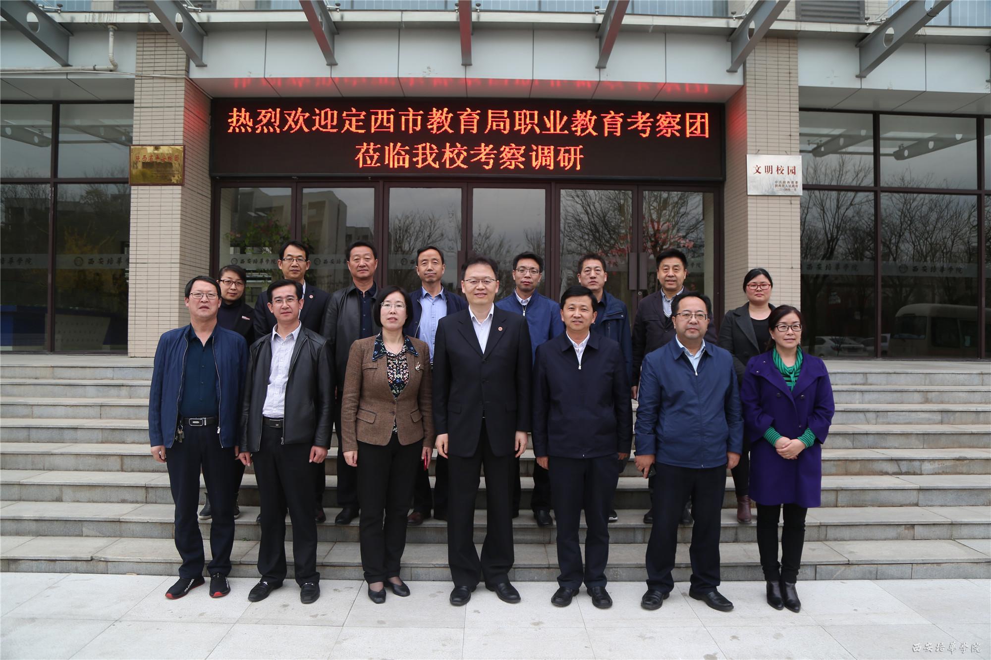 随行来访的还有,定西市教育局党组书记、局长盛淑兰,中天企业董事长、定西市职业教育集团董事长,安定区人民政府副区长郭海莲,陇西县人民政府副县长雍文洲,安定区教育局局长蔺福,陇西县教育局局长陈永义,定西工贸中等专业学校校长王文雁,定西理工中等专业学校校长张银翔,定西市教育局职业教育与成人教育科科长令勇峰。