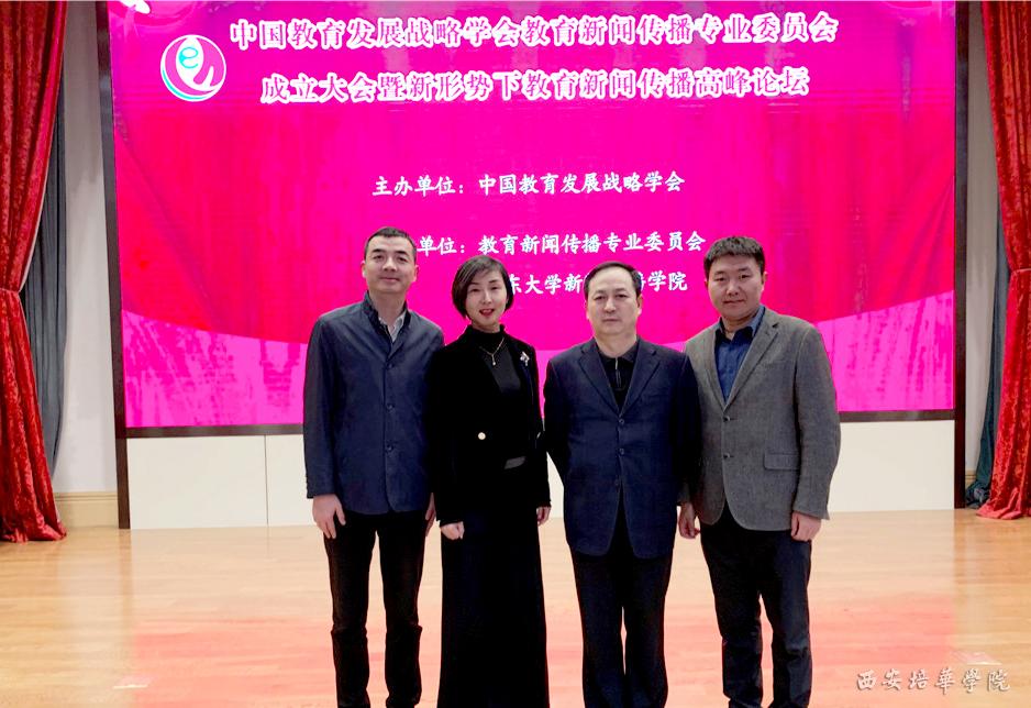 会上,教育部原新闻发言人王旭明当选为理事长,西安培华学院当选为常务理事单位,学校党委书记胡俊生当选为中国教育发展战略学会教育新闻传播专业委员会副理事长,学校副校长、党委副书记姚文静,传媒学院副院长赵伟当选为常务理事,学校党委宣传部长柳雨、传媒学院网络与新媒体专业带头人杜萍为理事。