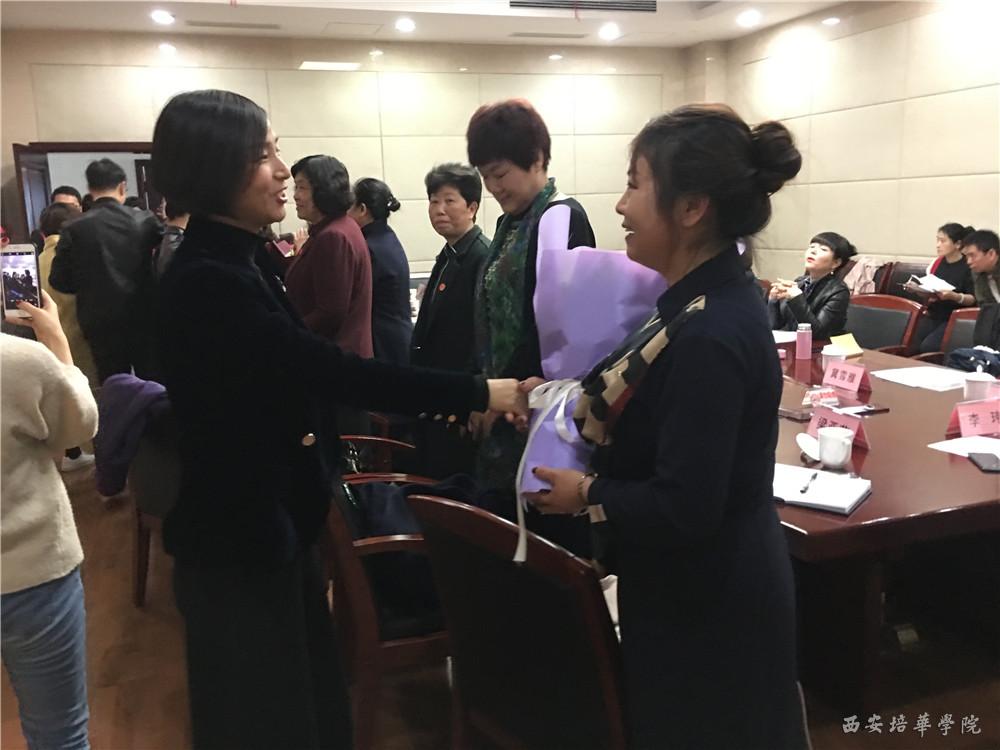 座谈结束后,陕西省巾帼志愿者联合会副会长、校党委副书记、副校长姚文静和省妇联领导、省巾帼志愿者联合会领导一起向三八红旗手们献花,并为她们颁发了礼品。同时也讲到:今天是一个非常难得的机会,能够聆听巾帼女性们令人动容的故事,备受鼓舞。他们在平凡中见真情,在坚守中获赞誉,在每一个平凡的岗位上都在用不忘初心和不懈奋斗书写人生传奇。这种精神我们也会带进高校,令每一位学生感受优秀品质,不断成长发光。