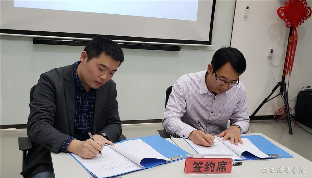 “HR双创基地”签约仪式,由科锐集团何总与西安培华学院校长助理秦助理现场进行校企合作签约。本次签约是在双方校企合作协议基础上的进一步深入合作,校企双方将依照协议落实联合培养人才的具体方案。