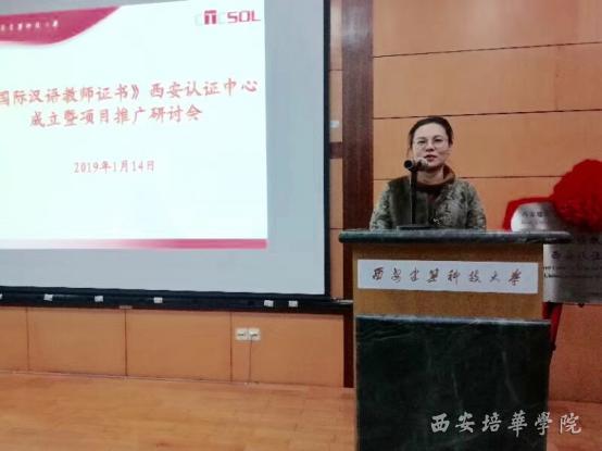 1月14日下午,国际汉语教师证书西安认证中心成立暨项目推广研讨会于西安建筑科技大学雁塔校区举行。由国家汉办、汉考国际、西安建筑科技大学联合成立的西安认证中心下设三个学习中心,该中心的成立,将为本地区考生学习培训和考试提供便利,提升陕西省高校汉语国际教育专业水平,加深西安对外开放程度,进一步推进“一带一路”建设。