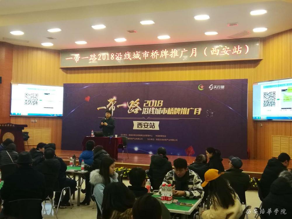 为宣传桥牌文化,发扬“一带一路”国际合作精神,由国家体育总局桥牌运动管理中心设立的“2018年‘一带一路’沿线城市桥牌推广月”活动,于2019年1月5日、6日在西安培华学院明德楼四楼报告厅举办。