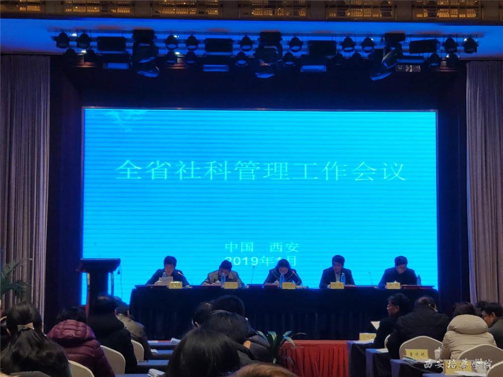 2018年全省社科管理工作会议于2019年1月4日上午召开。省委宣传部理论处处长、省社科规划办主任何军,省委宣传部理论处副处长、省社科规划办副主任朱强,省社科规划办国家社科基金项目主管洪博,省社科规划办全省社科基金项目主管李岩等领导出席会议。我校科研管理中心主任王西安、科研管理中心项目专员王辉代表学校参会。