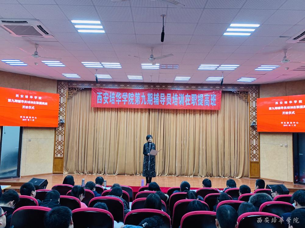 1月7日,西安培华学院第九期辅导员培训在职提高班开班仪式在汇知楼国学大讲堂举行,副校长、党委副书记姚文静,各二级院系党总支书记、行政副院长及全体辅导员共百余人参加了本次大会。
