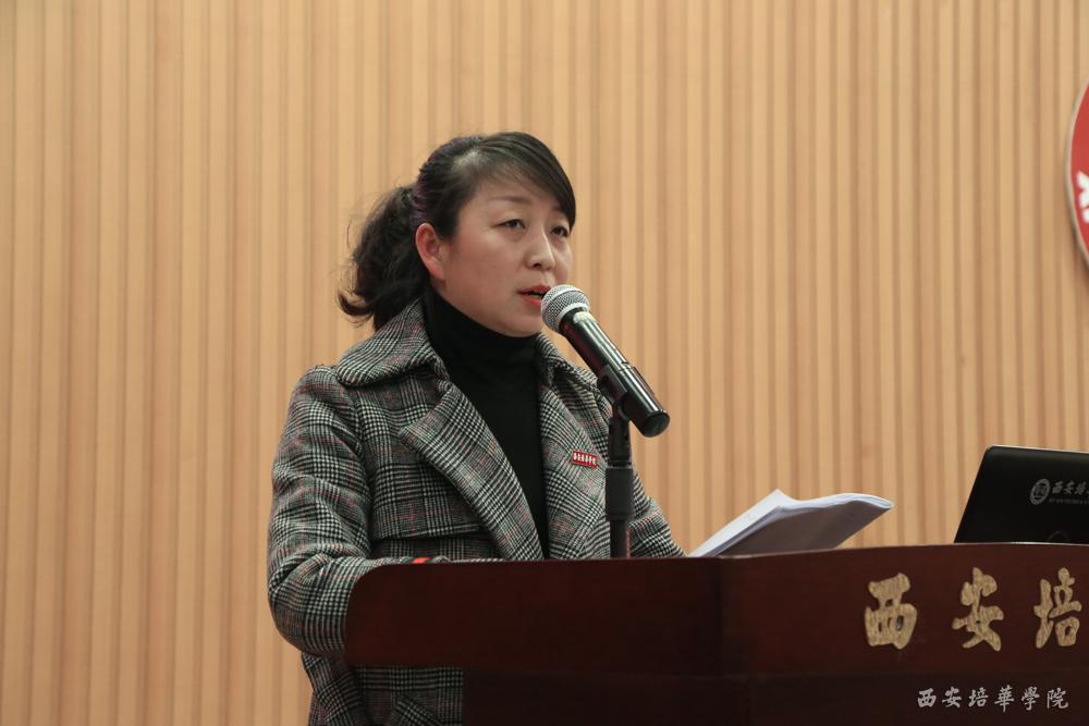 随后,女子学院副院长班理传达了“中国妇女第十二次全国代表大会”会议精神。班院长通过传达习近平总书记重要讲话、孙春兰闭幕式讲话、中国妇女十二大报告重要内容等几个方面对大会主要精神进行了详细的解读。她讲道:中国妇女十二大报告全面总结了党的十八大以来,在以习近平同志为核心的党中央坚强领导下,我国妇女事业和妇联工作的发展与进步,深刻阐述了用习近平新时代中国特色社会主义思想统领妇女工作新实践、贯彻习近平总书记关于妇女和妇女工作的重要论述的根本要求,明确了新时代中国妇女的使命和担当,部署了新时代妇联工作和妇联组织改革的目标任务,是今后一个时期指导妇女事业和妇联工作的重要文件。我们在学习中尤其要对“加强党对妇女工作的领导,坚持中国特色社会主义妇女发展道路,把握实现中华民族伟大复兴的中国梦这一当代中国妇女运动的时代主题,促进男女平等,发挥妇女在各个方面的积极作用,组织动员妇女走在时代前列,在改革发展稳定第一线建功立业”的重要论述加强领会。