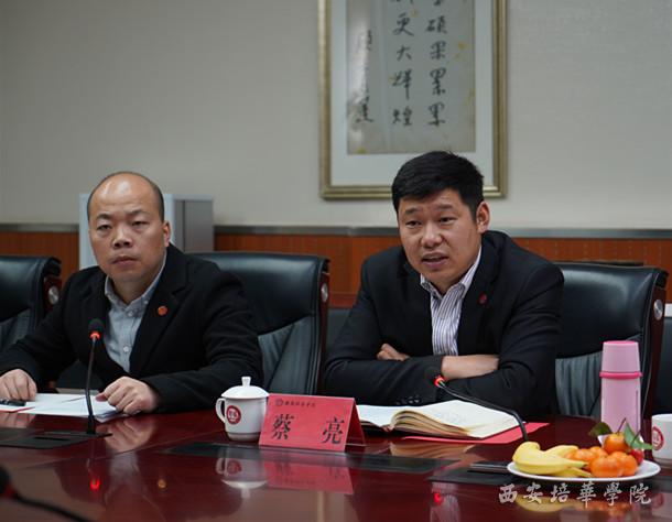 学生服务中心副主任、团委书记蔡亮从辅导员队伍建设的思路和措施, 学生工作体系化模式的构建, “三全育人”好的做法和成功经验;学风建设和公寓管理的举措五位一体等方面对我校学生工作做了简单介绍。并提出希望通过这次的交流学习,在之后的工作中能够共同进取、扬长避短。