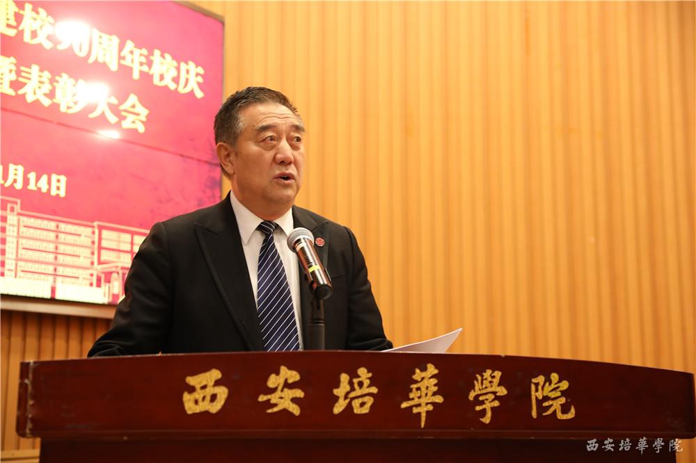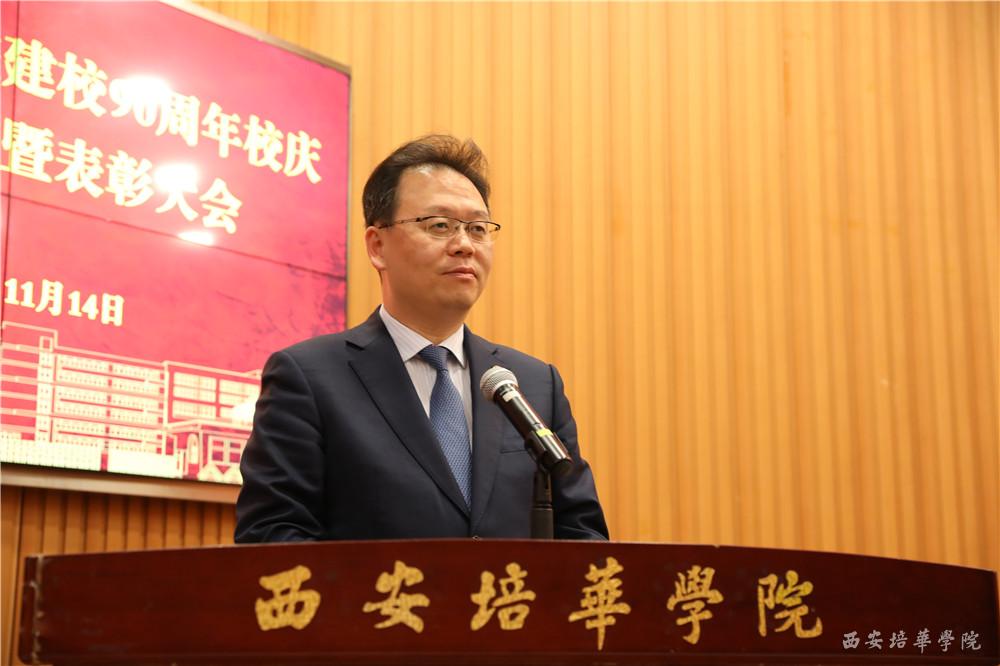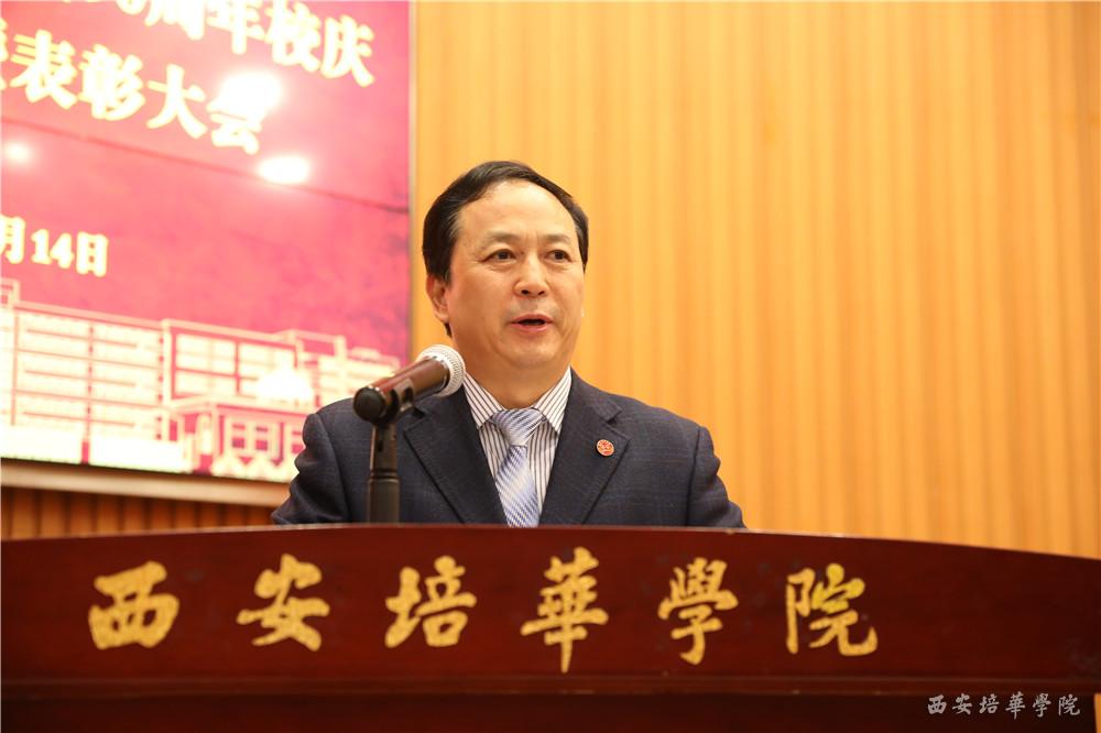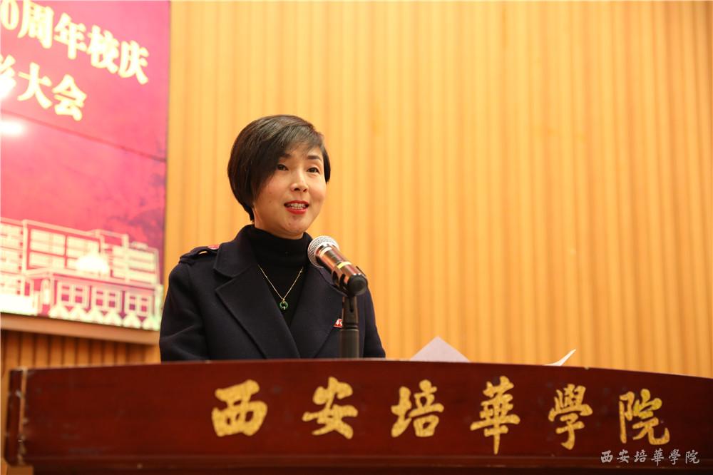 李映方校长宣读《西安培华学院关于表彰建校90周年校庆活动先进集体和先进个人的通报》