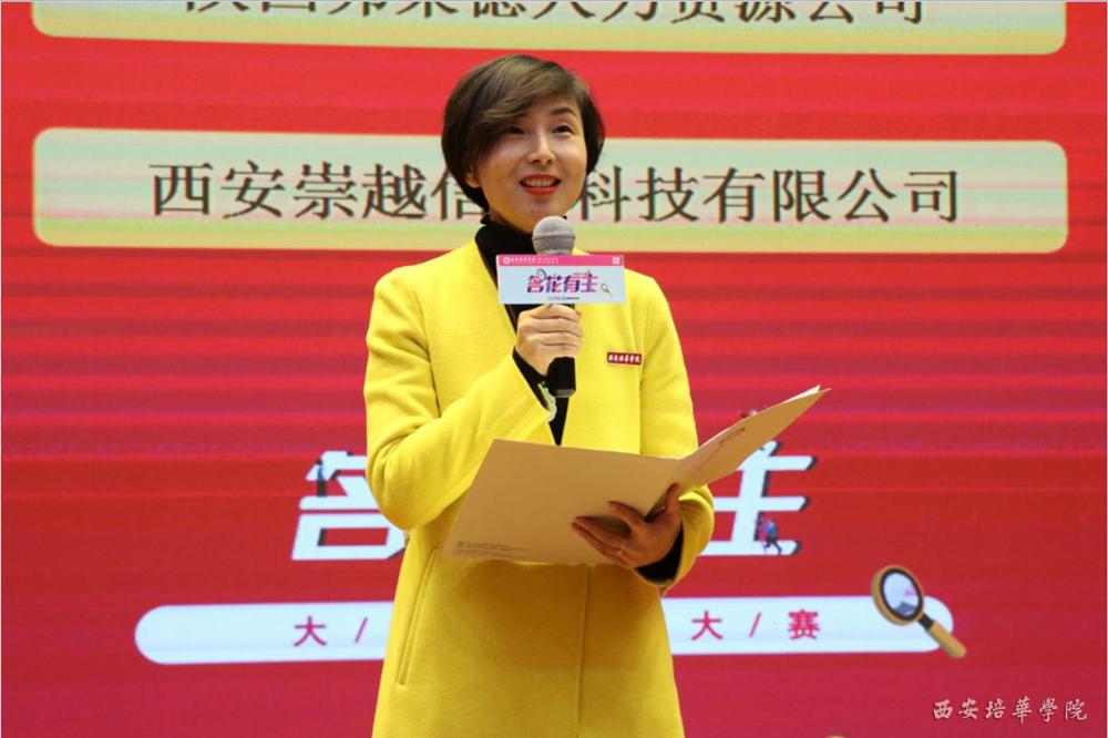 此次比赛邀请了58同城西安站行政人事经理孙伟、京东集团西北区域分公司招聘与组织发展经理张丹竹、陕西青贝文化发展有限公司总经理李娜、陕西广播电视台都市青春频道《都市快报》主持人、陕西广播电视台都市青春频道主播部副主任徐茜、陕西成长地产控股集团有限公司副总裁麻红卫、西安小白兔口腔医疗股份有限公司人力资源部经理王婷等6家用人单位相关负责人担任大赛评委。西安培华学院副校长、党委副书记姚文静,西安市人才服务中心毕业生就业指导部就业指导科科长张志诚及各院(部)中心的领导们、14家企业代表大众评审和学生代表400余人观看了精彩的决赛。