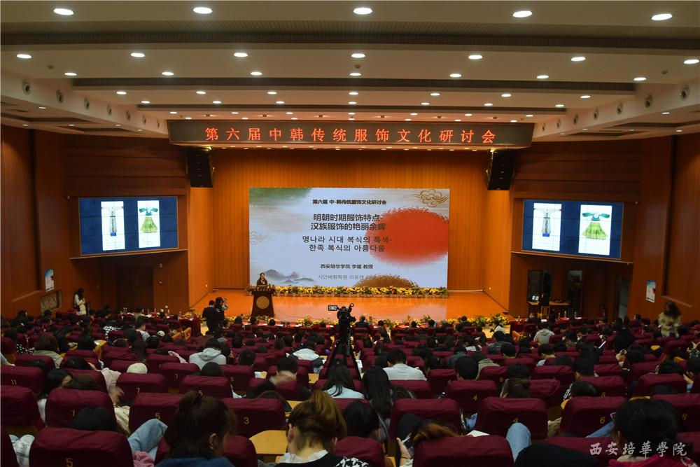 2018年10月25日下午,由韩国驻西安总领事馆、西安培华学院主办的第六届中韩传统服饰研讨会在西安培华学院维之图书馆报告厅举行。韩国驻西安总领事馆李康国总领事,陕西省政协常委、西安培华学院理事长姜波博士与中韩双方教育、学术界的专家学者,以及西安培华学院师生500余人共聚一堂,探讨赏析中韩服饰文化。