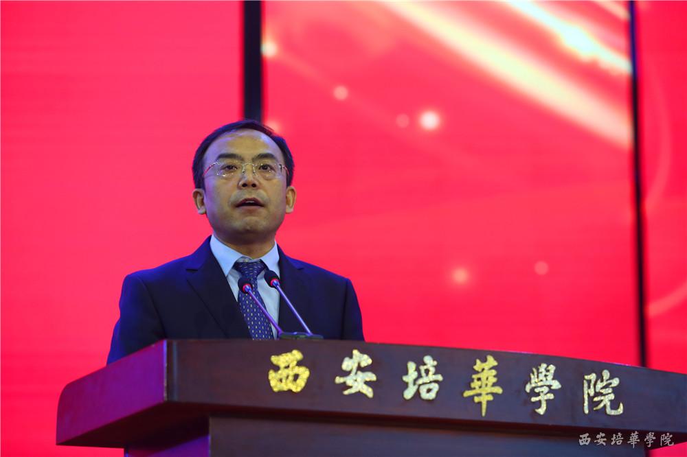 尊重教育,尊重民办,创业光荣,办学伟大,省政府将一如既往地支持以培华学院为代表的民办教育的建设、改革和发展,为广大师生施展才华提供更多更好的平台和条件。希望广大教师忠诚于党的教育事业,潜心于党的教育事业,以高尚的师德、人格魅力,教育影响学生,做学生健康成长的指导者和引路人。一千三百多年前,唐太宗李世民巡游此地,见一禾生双穗,呼其神禾。历史从未走远,未来就在眼前。今天,培华学院耸立于此,我们相信,西安培华学院的广大同学只要脚踏实地、坚持不懈、刻苦学习,勇于探索,一定会成为可堪大用、能负重任的神禾之才。