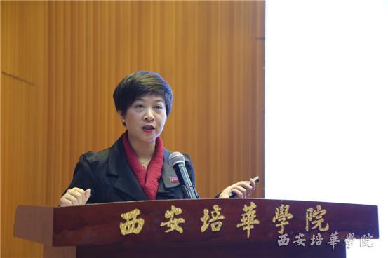 西安培华学院女子学院常务副院院长刘利侠做《“无业者有业”,到“有业者乐业”——培华女性创业教育90年》报告