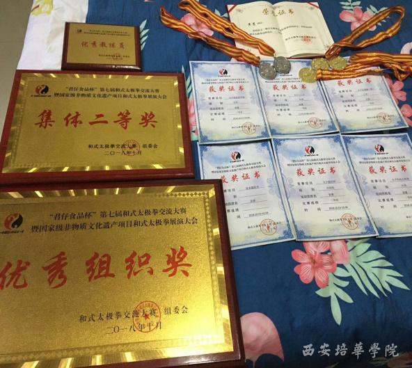 本次比赛,我校代表队共获得了七金、八银、二十铜,集体套路二等奖和优秀组织奖的优异成绩。值得一提的是黄慧老师的论文《和式太极拳进高校必然性的研究》在和式太极拳高峰论坛中获得一等奖,广受大家好评。