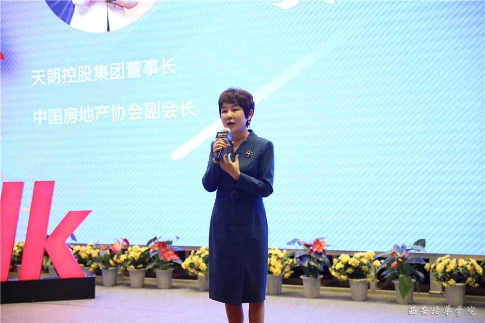 第二位作分享的的嘉宾是天朗控股集团董事长孙茵女士,她的分享主题为:“生活需要向前看”。孙茵女士用精辟的语言总结了自己的创业历程,她说:“当年的创业是一个不懂的人领着一群不懂的人创业,靠着一种坚持、一种创新的精神,更靠着这种学习的精神,完成了天朗的第一次创业。”希望广大的培华学子,一定要具备坚持不懈和勇于创新的精神,在心中坚信前途是美好的,困难是暂时的,未来一定属于我们的。