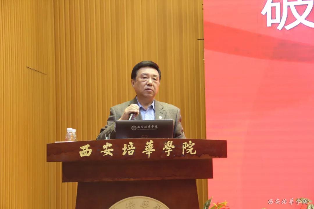 姜波理事长简要回顾了西安培华学院发展历程,他指出现在是一个大数据供大于求的时代,会计这一专业能否突出特性、产与学能否融合、如何解决学习的专业与就业的岗位是否对口的问题,希望广大师生认真聆听讲座,探寻问题解决的方案。