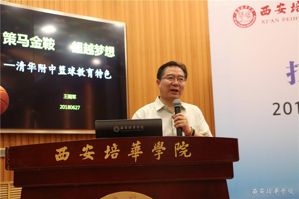 下午,清华大学附属中学校长王殿军作题为“策马金鞍,超越梦想”的主题报告,王校长与大家分享了清华大学附属中学体育教学育人工作的典型经验并就中小学校园篮球特色打造提出建设性意见。