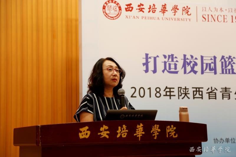 西安体育学院教授张蕊、西安交通大学附属中学高级教练石晶、速朗体育科技有限公司总经理朱庆分别就校园“一校一球一操”开展、校园篮球训练体系建设、篮球场地设施器材选用等作了专题报告。