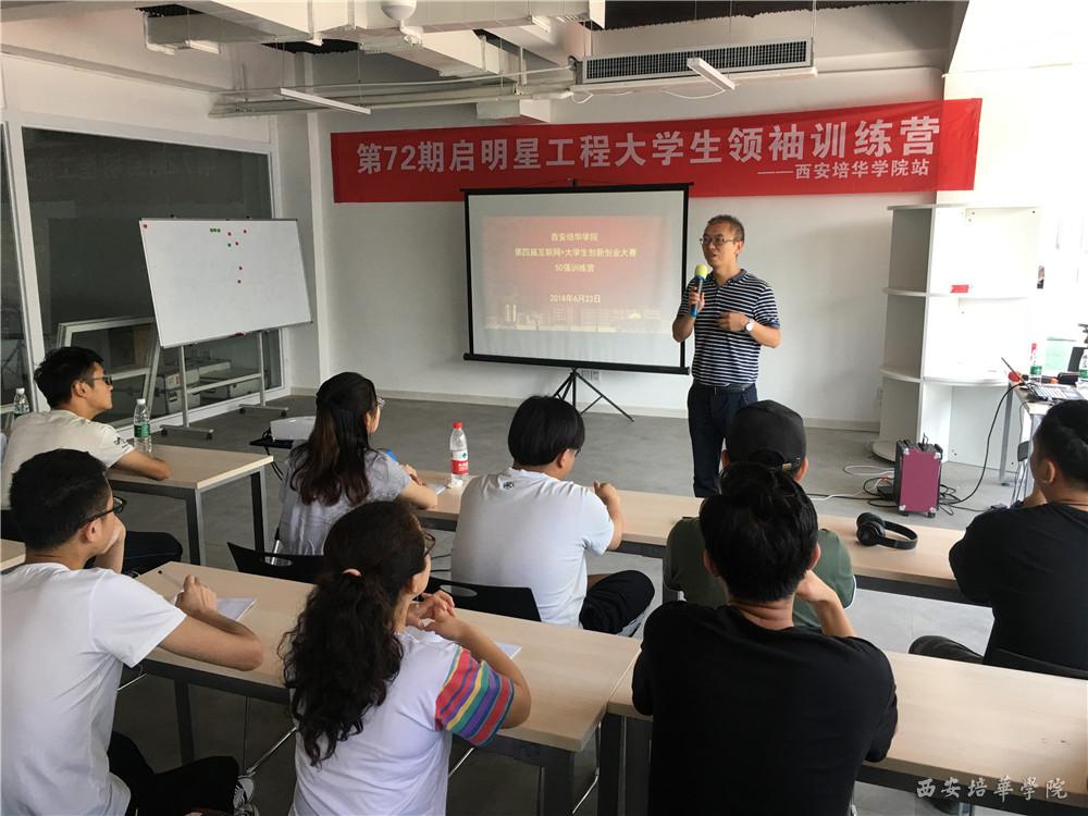训练营开始,杜志刚老师分析了互联网+大赛产生的背景和省赛评审细则,从项目和业务描述、项目团队、产品市场以及竞争关系等综合讲述了如何写出高质量的商业计划书和路演PPT。训练营中,还邀请了西安本地的十余名企业家为学生分享了自己的创业经历,使学生对创业有了进一步的认识。