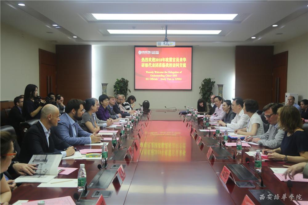 6月26日上午,2018年欧盟官员来华研修代表团一行来我校交流访问,学校理事长姜波、副校长刘越莲、人文与国际教育学院院长李延风、国际交流中心主任王鹏等热情接待了来宾一行,并陪同参观座谈。