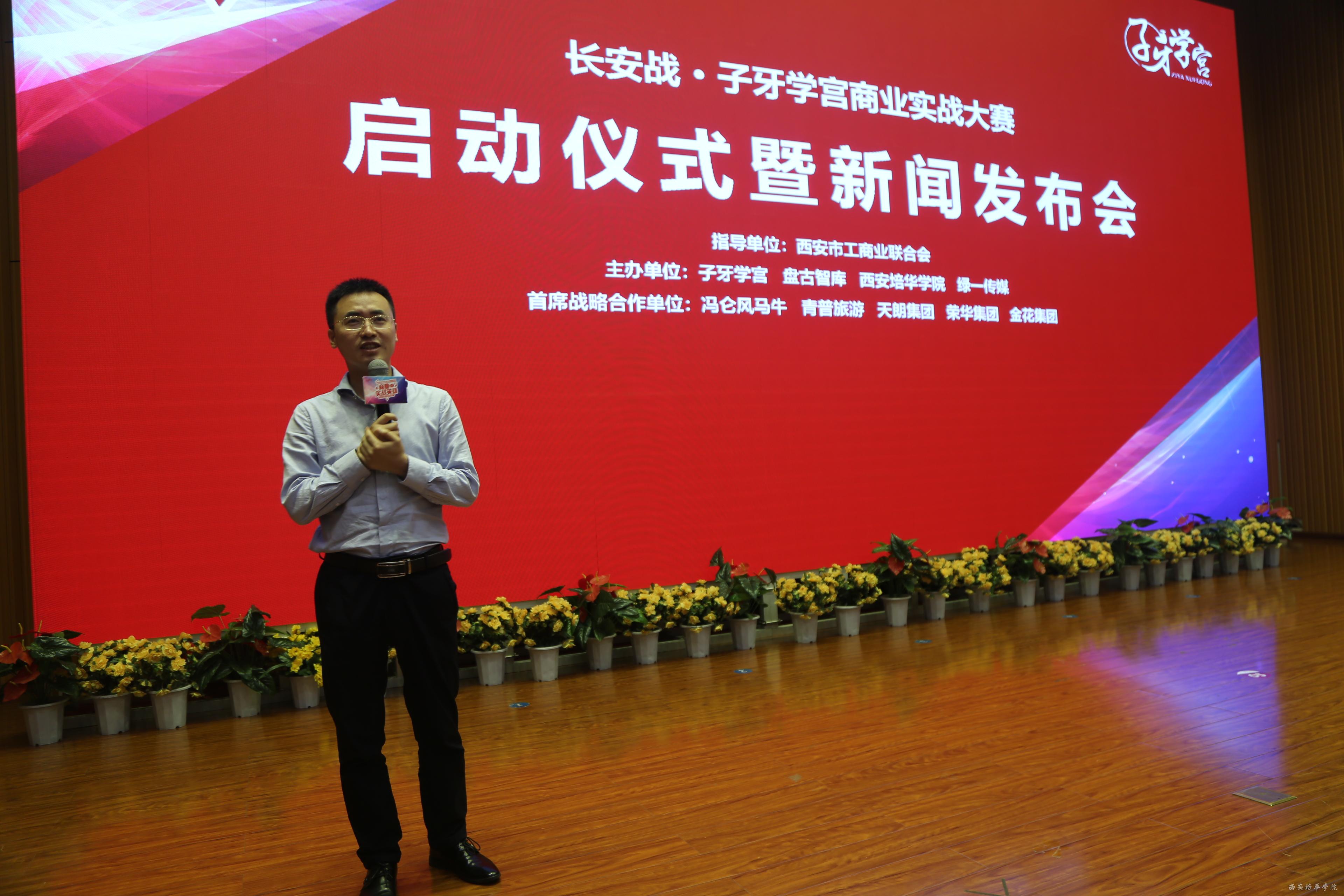 仪式上,姜波理事长代表学校首先致辞。他讲到,培华即将在今年的10月21日迎来90周年校庆,培华的发展史就是一部创业史。学校历来十分重视培养学生的实践动手能力和创新创业能力,在教育教学过程中倡导“真学、真做、掌握真本领”。本次与子牙学宫等企业共同主办本次商业实战大赛,旨在有更多的青年人参与到创业实战中来,通过实战继承和发扬企业家精神,共同为大西安的发展做出贡献。