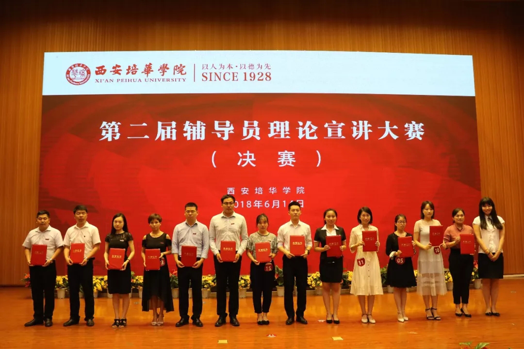 6月14日下午,我校第二届辅导员理论宣讲大赛(决赛)在维之图书馆报告厅举行。我校理事长姜波博士,党委书记胡俊生,党委副书记、副校长姚文静,以及各二级学院党总支书记、辅导员、学生代表共400余人参加了本次大赛。大赛评委由陕西省学工系统思政专家,陕西师范大学机关党委书记刘建军教授,全国高校辅陕西省优秀辅导员十九大精神巡讲团成员,第八届“全国高校辅导员年度人物”入围奖,陕西省十佳辅导员,第五届全国高校辅导员职业能力大赛三等奖获得者,西安电子科技大学王艳老师,学工部部长徐莹,思政部主任史晓眉,党委工作部部长陈玲,辅导员代表担任。