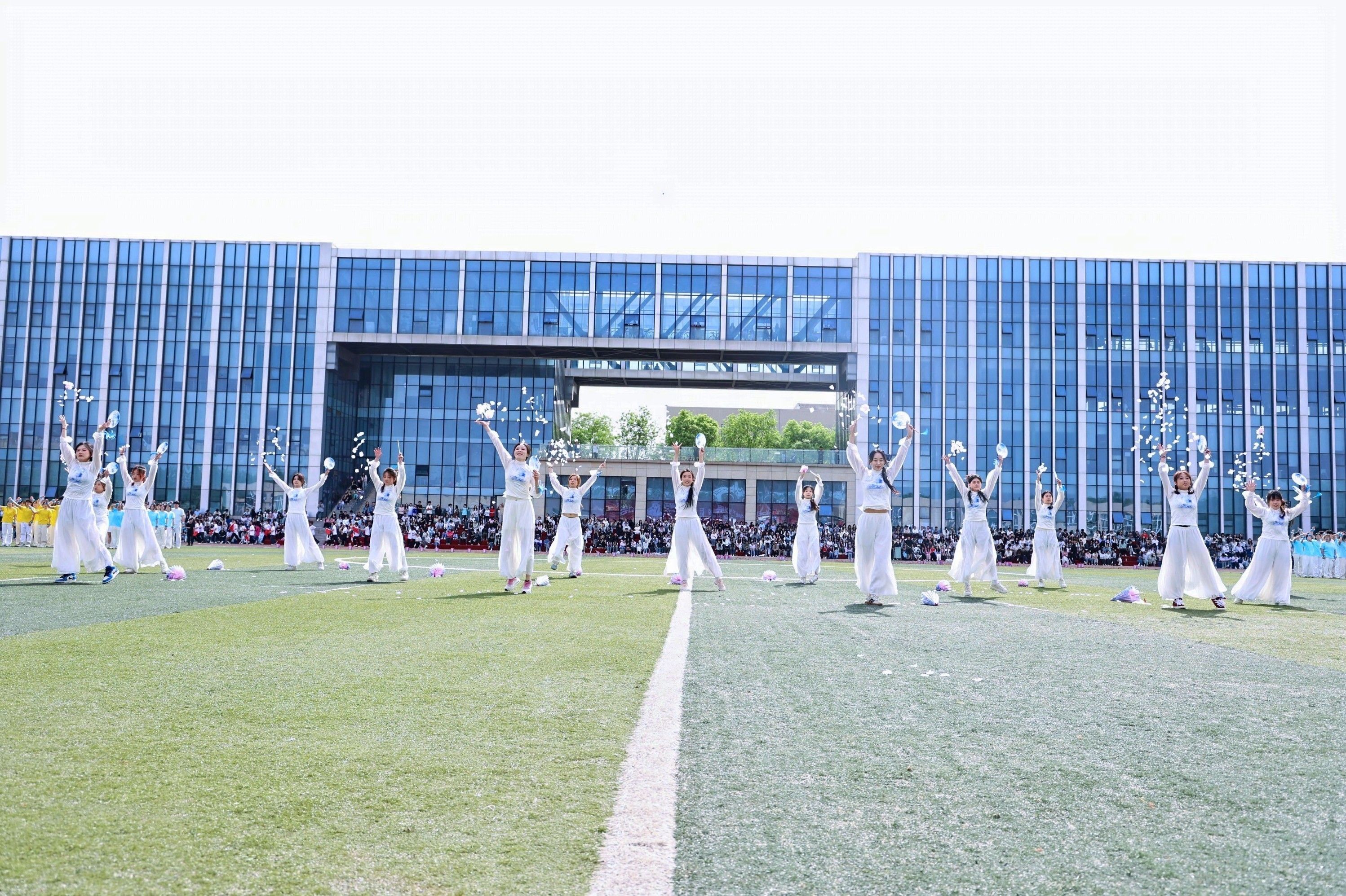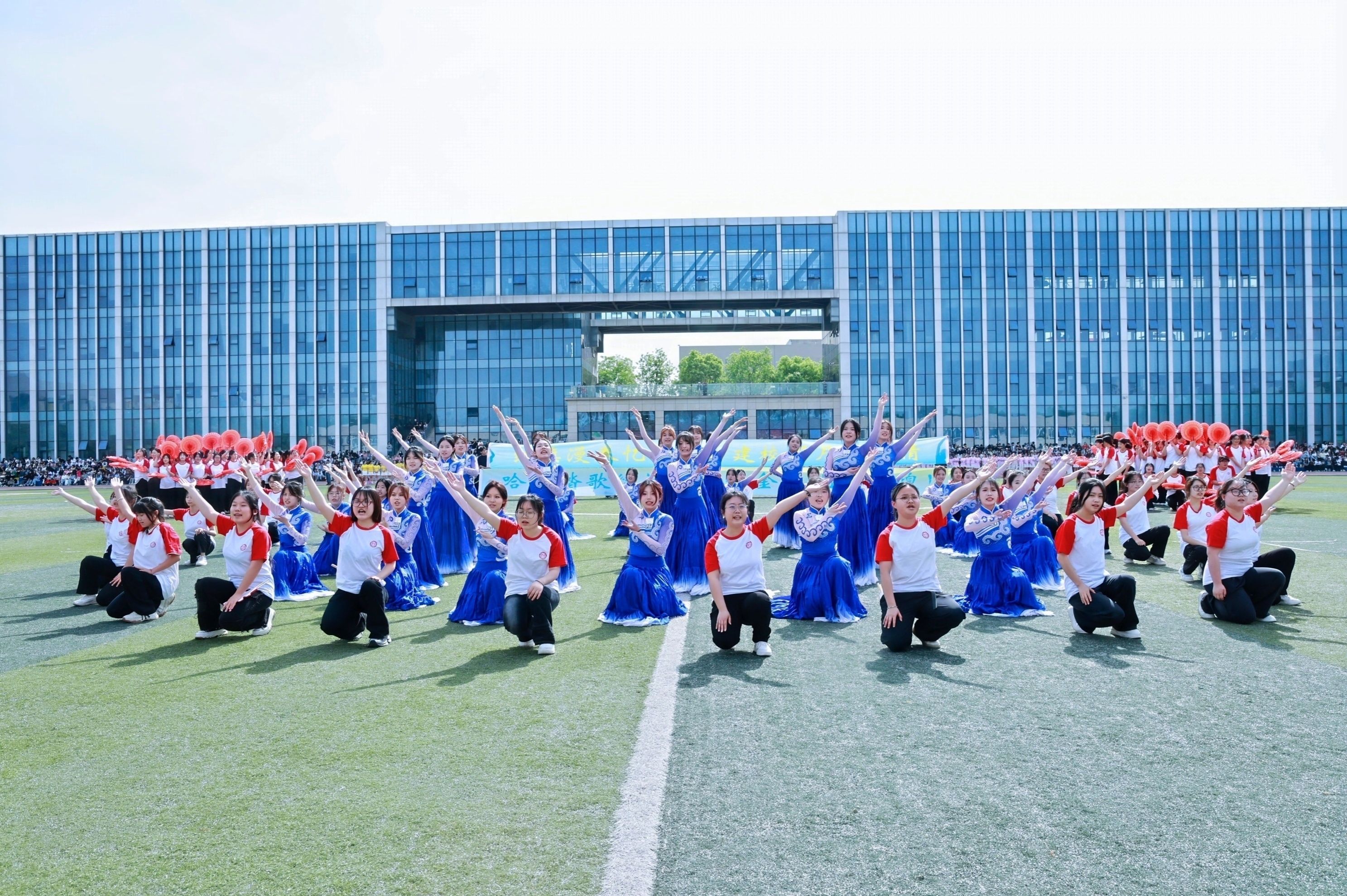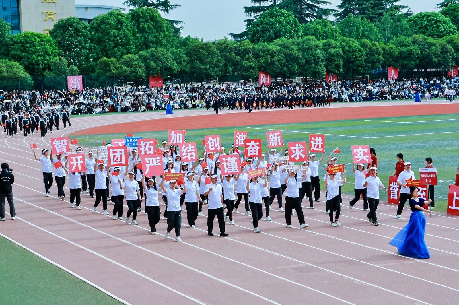会计与金融学院学子,用民族与神话共舞多元风采,传媒与设计学院学子,执光影为翼转动时代的脉搏,体育学院学子脚步铿锵,目光如炬,浇筑“强国有我”的铮铮誓言!女子学院学子以优雅书写,“巾帼不让须眉”的当代注脚。