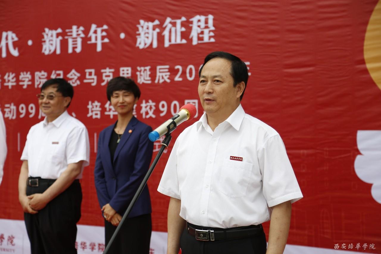 我校党委书记胡俊生宣布“西安培华学院纪念马克思诞辰200周年暨庆祝培华建校90周年火炬传递仪式”正式开始
