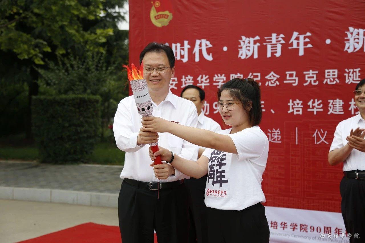 大会开始前,在长安校区南门举办了火炬传递仪式,胡俊生书记宣布火炬传递仪式开始,姜波理事长递交火炬给第一棒火炬手并发布开跑指令,90名青年学生手持火炬,接力绕校园一周,象征培华90年教育历程薪火相传。