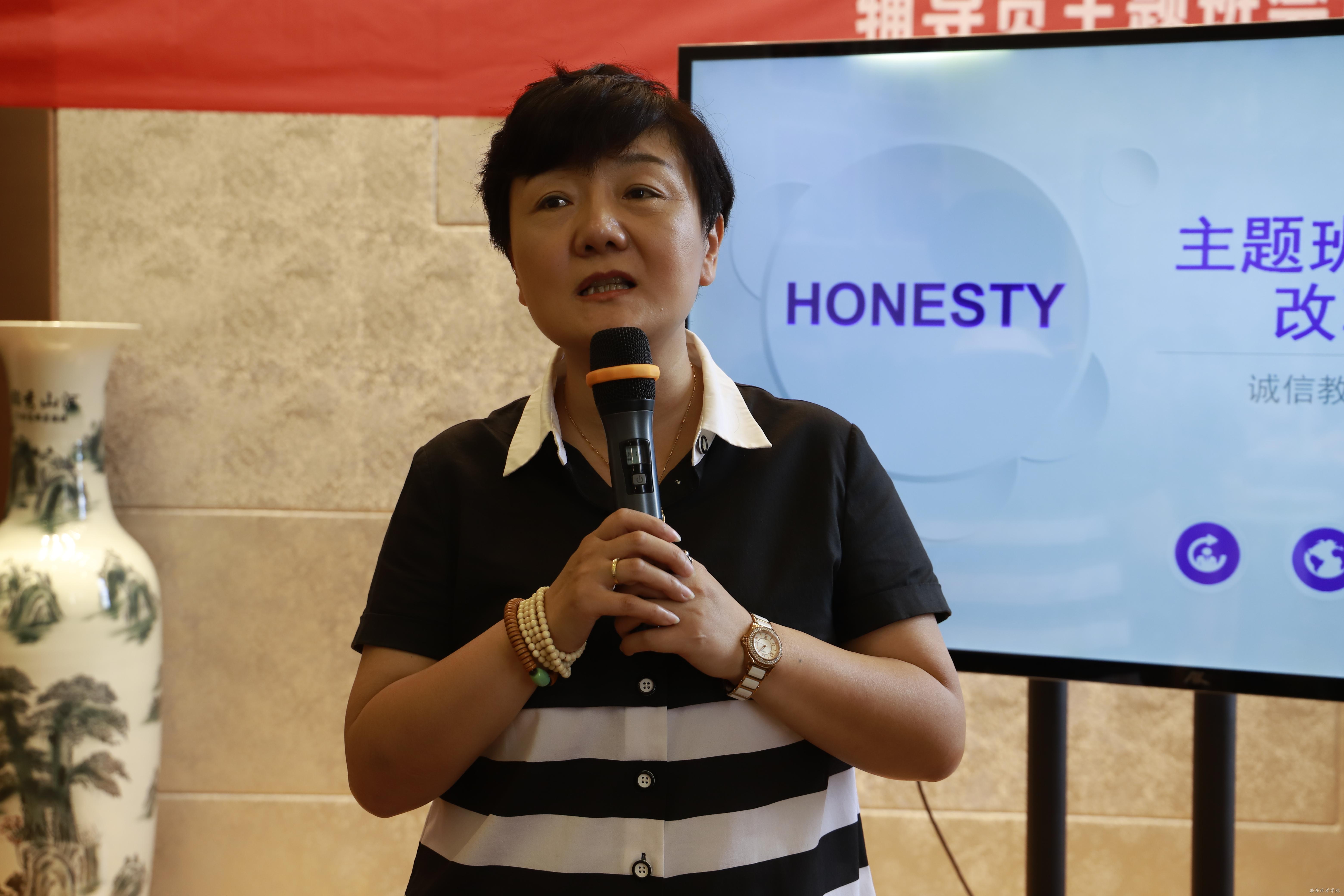 开放教育学院党总支书记、行政副院长何丽就她们组在主题班会课程改革中遇到的问题进行主题交流,分享了她们在主题班会课程改革中的经验,同时根据每一个主题班会的不同,对其课时的设置提出了问题。