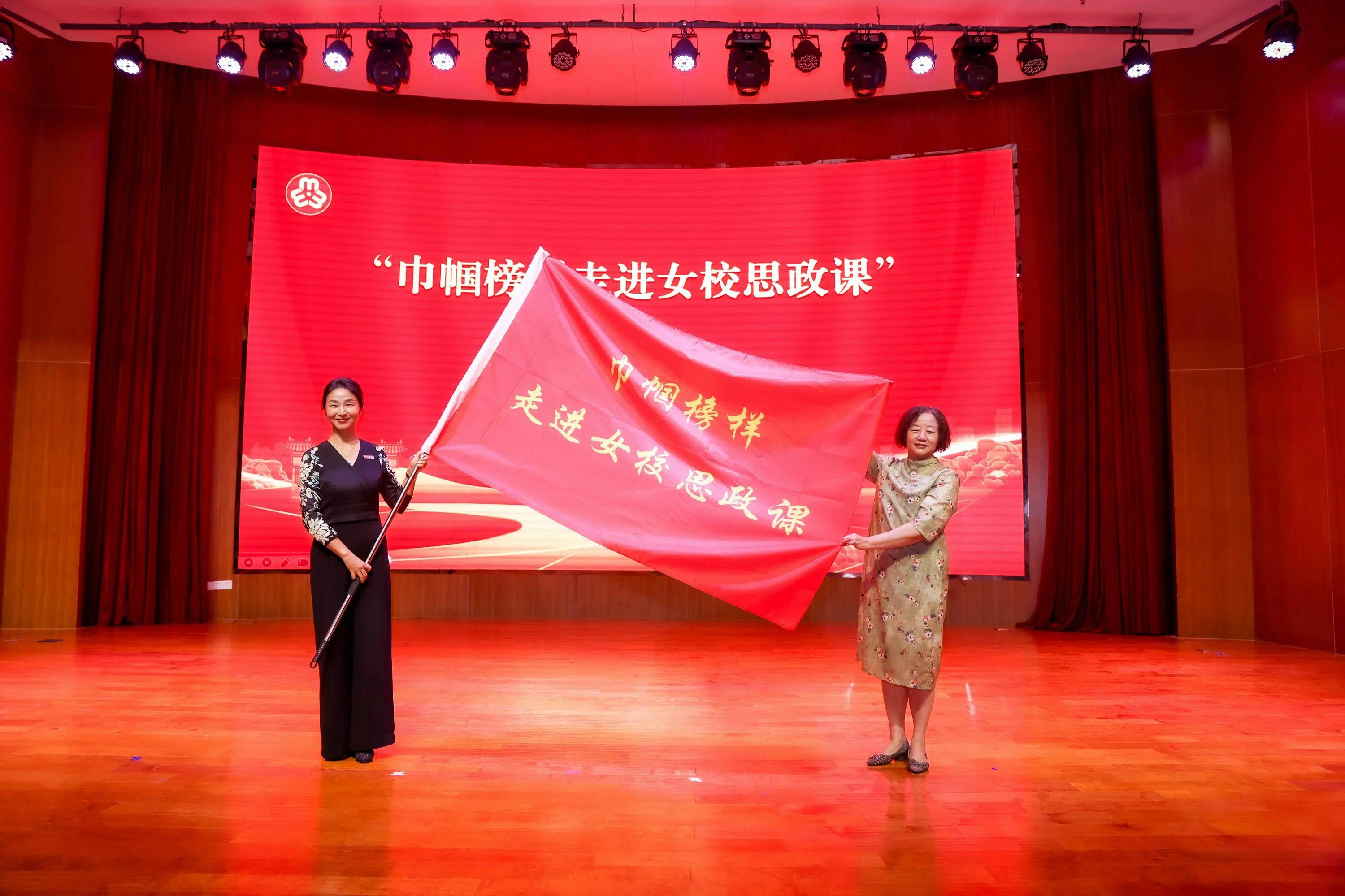 现场举行了“巾帼榜样走进女校思政课”接力传旗仪式。南京师范大学金陵女子学院院长边霞将旗帜交到了学校副校长姚文静手中,这承载着巾帼精神的薪火相传,更标志着“巾帼榜样走进女校思政课”系列活动走进培华。