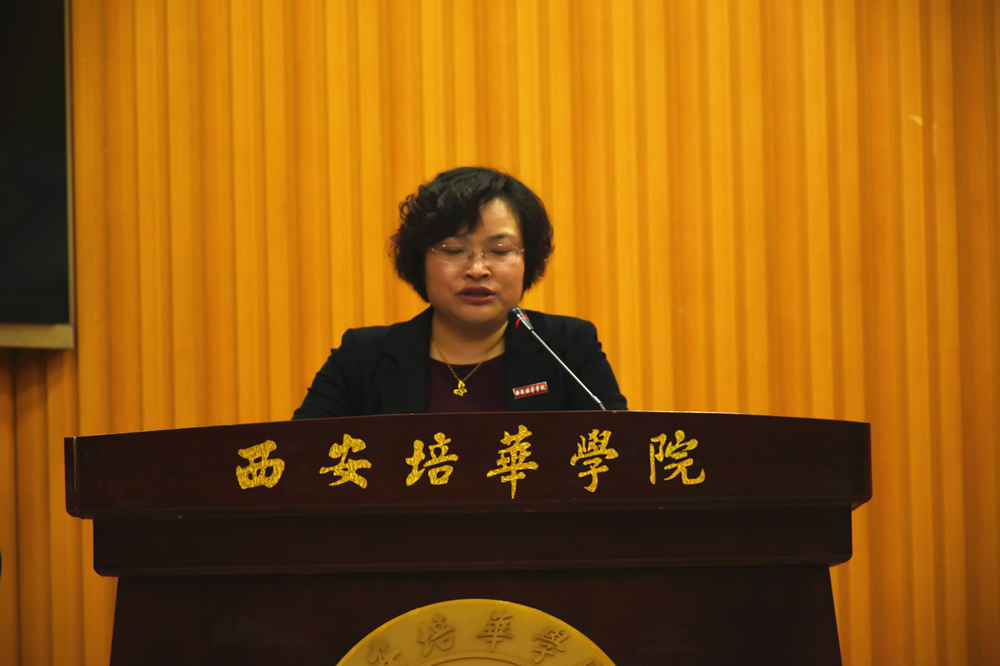 于国亮副校长宣读《西安培华学院关于表彰2017年度学科竞赛获奖学生的通报》