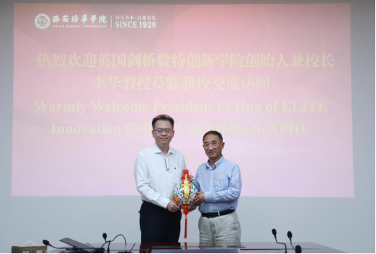 理事长姜波与英国剑桥毅特创新学院院长李华互赠礼物