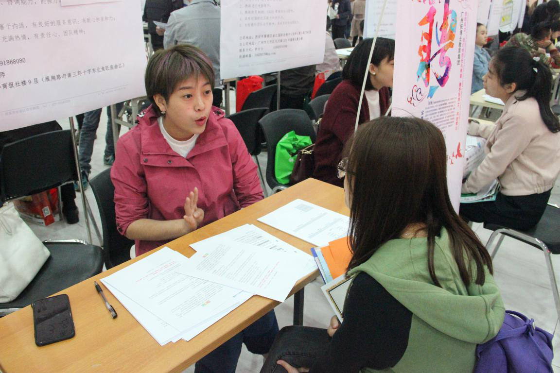 在招聘会场上,毕业生络绎不绝,与用人单位进行了积极的沟通交流,中国银行、陕西省军区军人服务社等多家招聘人员反馈已收到很多现场学生投送的简历,会后他们将尽快组织学生参加面试,并对学校一直以来为用人单位提供的各项服务表示感谢,同时还表示今后将继续加强和学校的联系与合作。