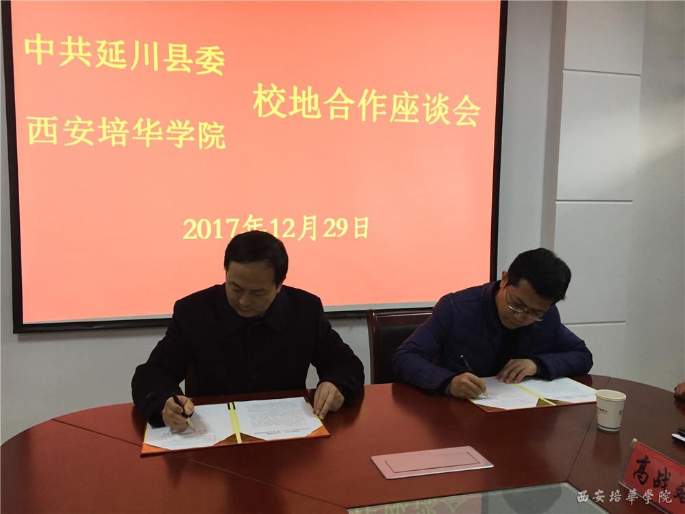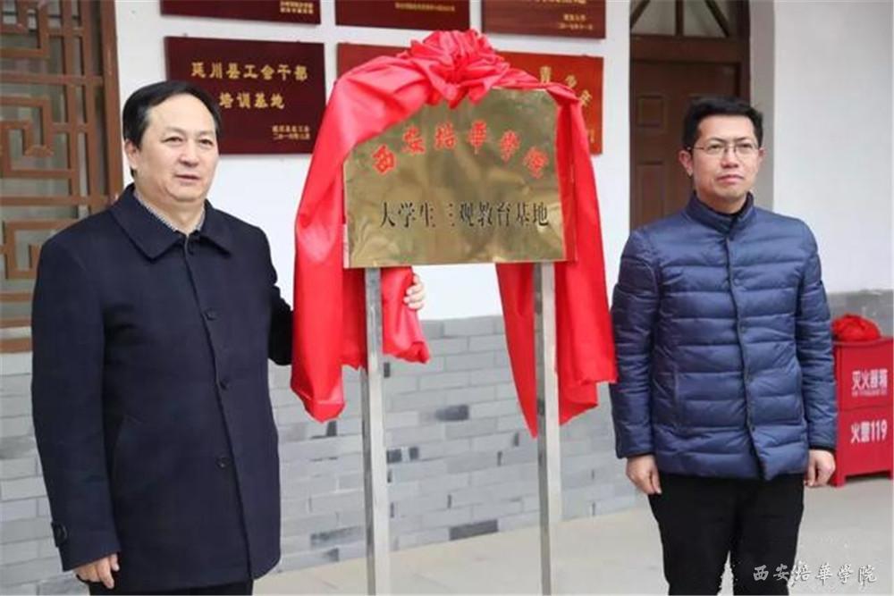 胡俊生书记与李钢部长共同为“西安培华学院大学生‘三观’教育基地”揭牌。仪式后,双方举行了简要座谈,座谈会上,胡俊生书记与李钢部长共同签订了《西安培华学院、中共延川县委关于在梁家河村建立大学生“三观”教育基地的合作协议》。会后,双方人员参观了梁家河知青旧居及文安驿古镇。
