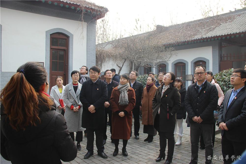 为继承红色革命精神、深入学习十九大精神,西安培华学院机关第五、第六党支部与陕西省教育厅民教处、学生处党支部30余名党员于12月15日上午,前往八路军西安办事处纪念馆开展了以“不忘初心,牢记使命”为主题的党日活动。在讲解员的带领下,参加活动的党员进行了认真的参观学习。
