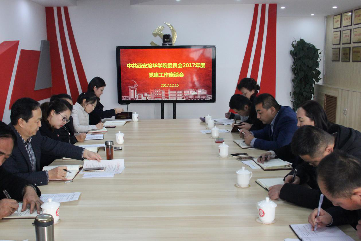 为进一步加强和改进学校党建工作、总结交流经验、加强工作研究、提升基层党建工作科学化水平,12月15日上午,我校党委在明德楼党员活动室召开了2017年党建工作座谈会,校党委书记胡俊生、党委工作部部长陈玲、思政部主任史晓眉、各二级学院党总支书记及党委工作部、思政部相关工作人员参加了座谈会。会议由校党委书记胡俊生主持。