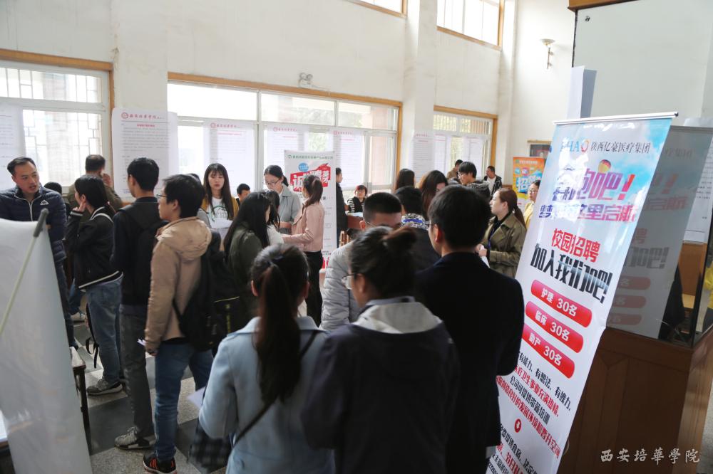 在与参加招聘会学生交谈过程中,招生与就业指导中心鲍伟主任讲到,就业是人生的一个重大转折点,是每位毕业生都需要面对的一场考验,截止目前学校已成功为2017届毕业生举办专场校园招聘会22场,大中型校园招聘会7场,引进企业515家,为2017届毕业生提供就业岗位26774个,希望同学们在择业过程中,不断积累经验,争取早日找到适合的工作岗位,描绘出自己的职场蓝图。医学院行政副院长姚斌讲到,为了促进毕业生更好就业,近年来医学院不断加强与医疗卫生事业单位的合作,为毕业生搭建良好的实习就业平台,前不久西京医院、唐都医院、陕西省人民医院均来校招聘医学类实习生,希望在校的同学们在今后的学习生活中,更加努力学习专业知识,提高综合素质,为将来就业奠定基础。