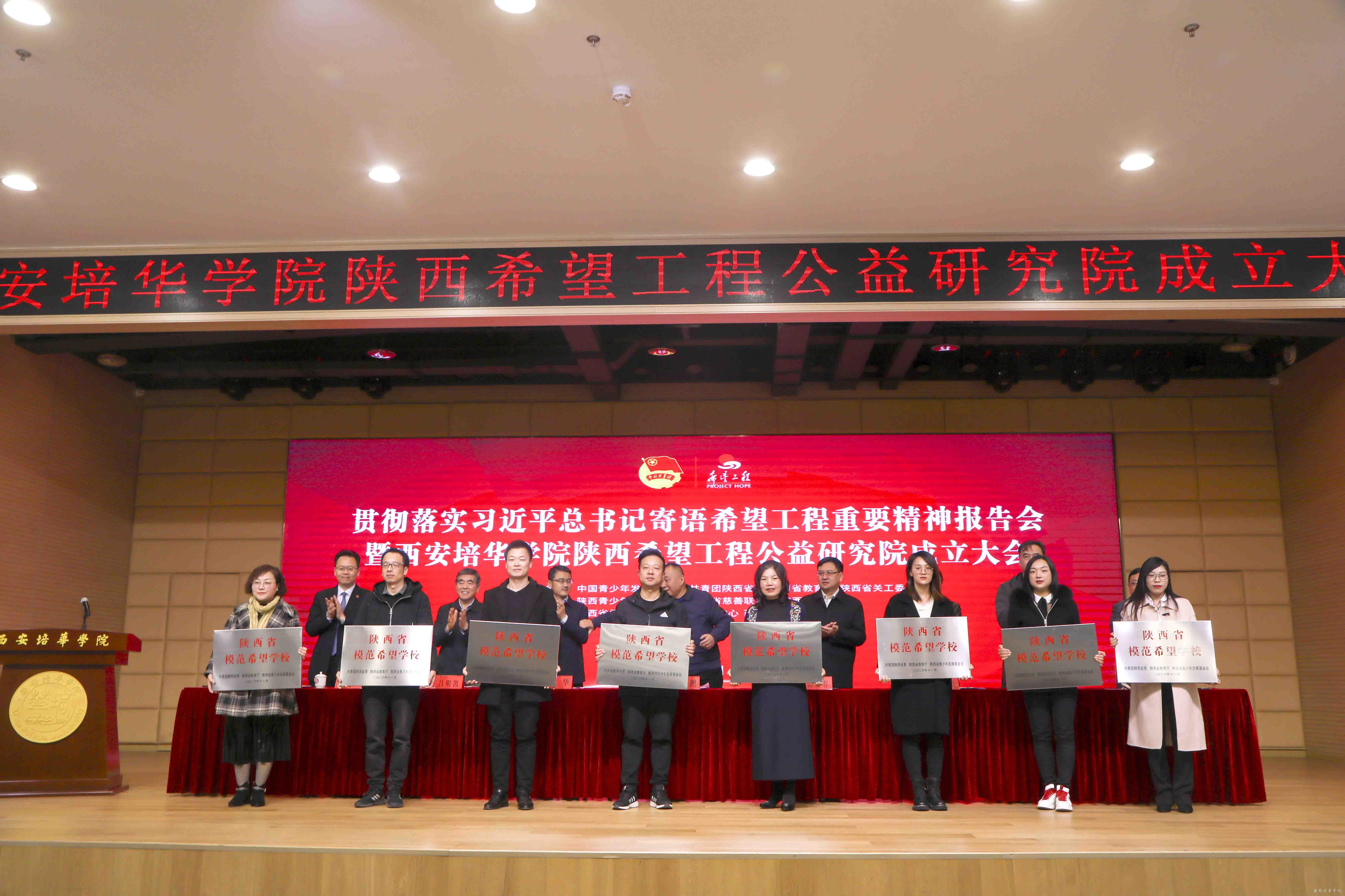 为学习贯彻落实党的十九届五中全会精神,进一步深入学习贯彻落实习近平总书记对希望工程寄语精神,推动新时代陕西希望工程事业发展,11月20日上午,由共青团陕西省委、陕西省青少年发展基金会、西安培华学院等单位联合举办的贯彻落实习近平总书记寄语希望工程精神报告会暨西安培华学院陕西希望工程公益研究院成立仪式在西安培华学院举行。