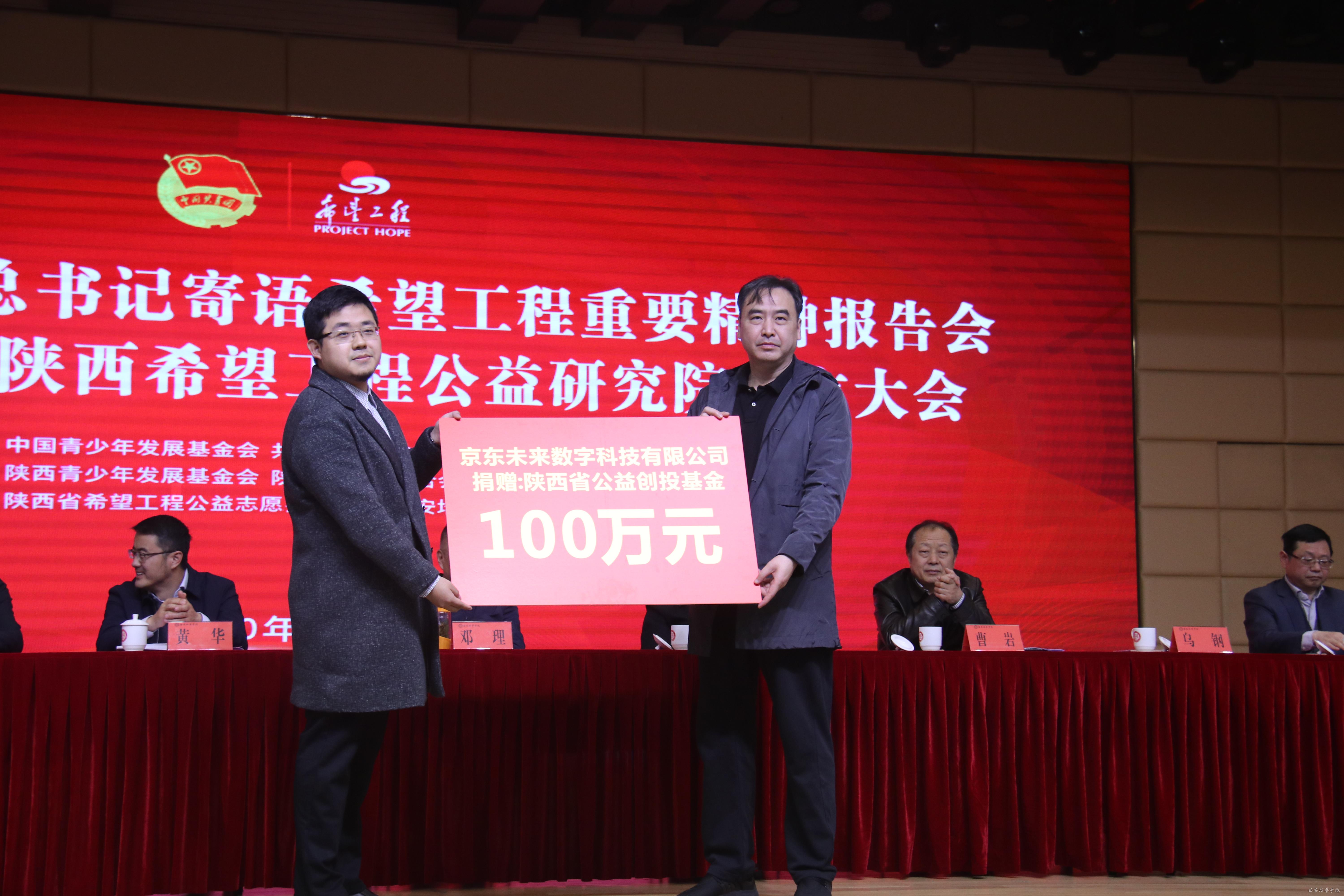 京东未来数字科技有限公司捐赠创投资金100万元