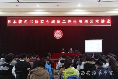 为弘扬传统文化,普及书法艺术,丰富校园文化建设,4月3日,日本著名书法艺术家、篆刻家、西安培华学院客座教授今城昭二在汇知楼阳光厅作关于“日本书法的中国根源及其发展”的主题艺术讲座。日本白马国际艺术会会长、陕西中国画研究院副院长、该校佛教艺术研究院院长马树茂,艺术学院院长东会峰以及艺术学院师生代表200余人聆听并参与了此次活动。