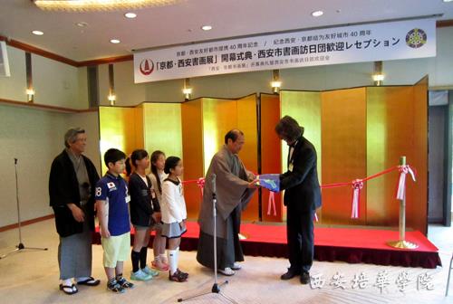 据了解,此次西安市与京都市建立友好城市40周年纪念活动由西安市外事办公室主办,由西安培华学院参加策划并协办,由大唐西市集团,陕西电视台等组成代表团,市外办委任我校马树茂教授担任西安市书画交流代表团团长参加开幕式并代表发言。在活动期间,马树茂教授受到日本京都市市长的热情接待,并商议了今年两市的友好活动。在交流活动中,我校青年教师张珊,陈鹏涛、祝明丽,石红卫以及马树茂教授的作品均参加了京都市、奈良市的纪念展,展出后的作品作为捐赠由京都市政府永久保存。
