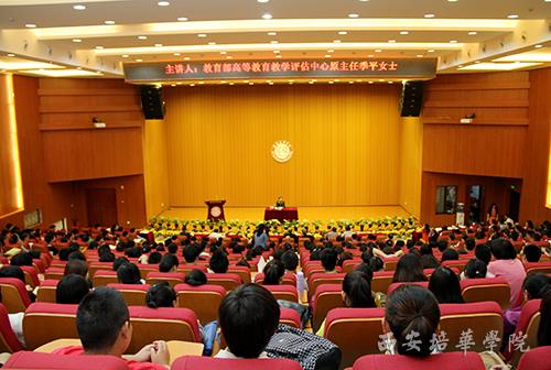 5月20日,教育部高等教育教学评估中心原主任、中国民办教育协会副会长、中国民办教育协会高等教育专业委员会理事长季平女士应邀来我校作了题为“抓住机遇、再上台阶,推进高水平民办大学建设”的学术报告,并参观我校校史馆、培华艺术馆。我校理事长姜波、校长王拴才、党委书记周庆华、副校长张栓升、段茂贤、王根性、校长助理姜朗,各二级学院(部)、处(室)500余人聆听了报告。报告会由党委书记周庆华主持。