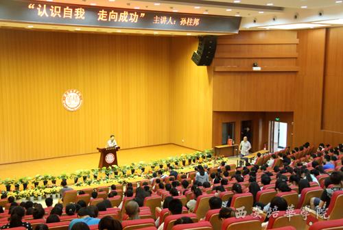 5月8日,陕西省万鑫家电公司董事长孙柱邦来我校在维之图书馆报告厅作题为“认识自我 走向成功”的讲座。校长王拴才为孙柱邦董事长颁发 “创业导师”聘书。就业指导中心主任王文勇等领导与三百余名师生代表一起聆听了讲座,讲座由陕西校友会秘书长、我校党政办公室主任赵维仪主持。
